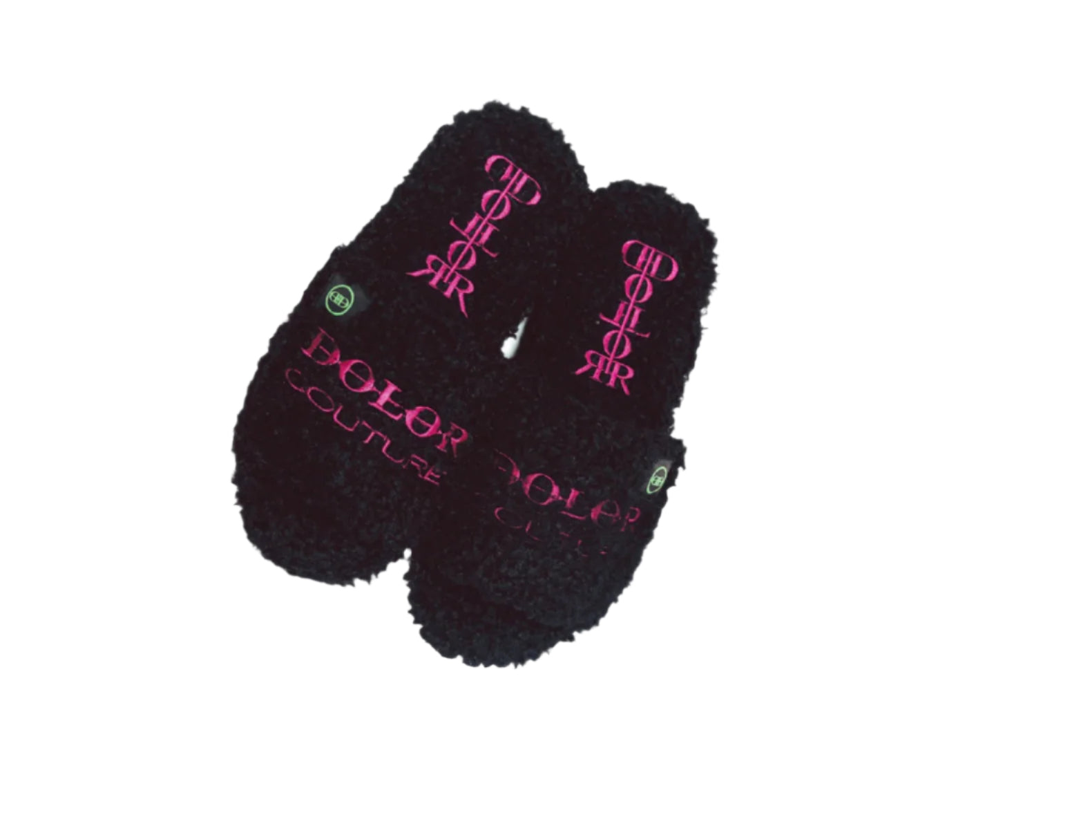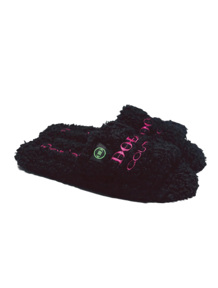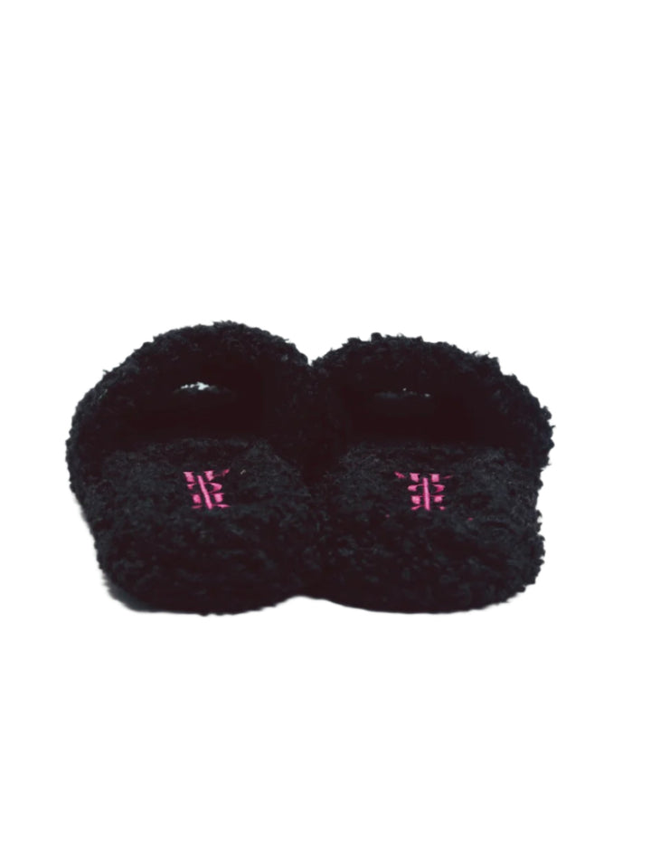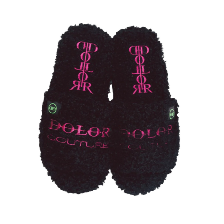 Furry Slide Sandal in Black/Pink/Green
