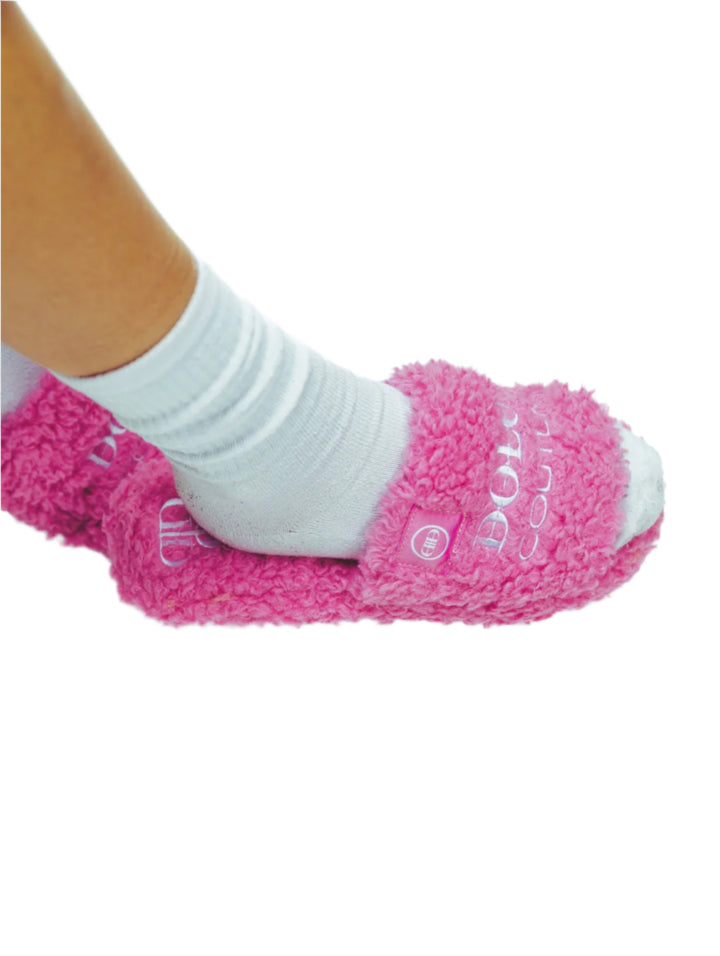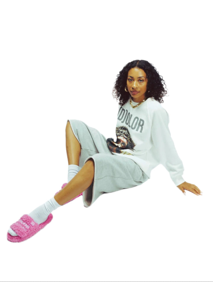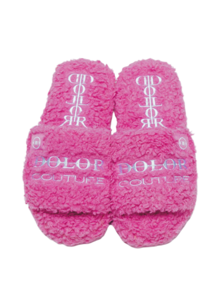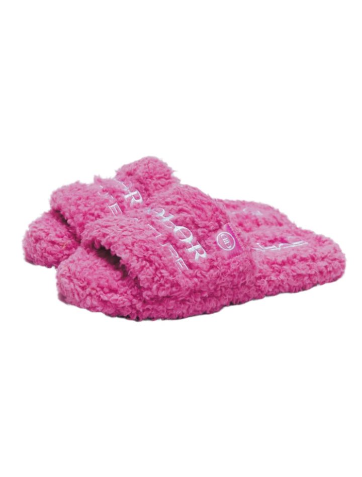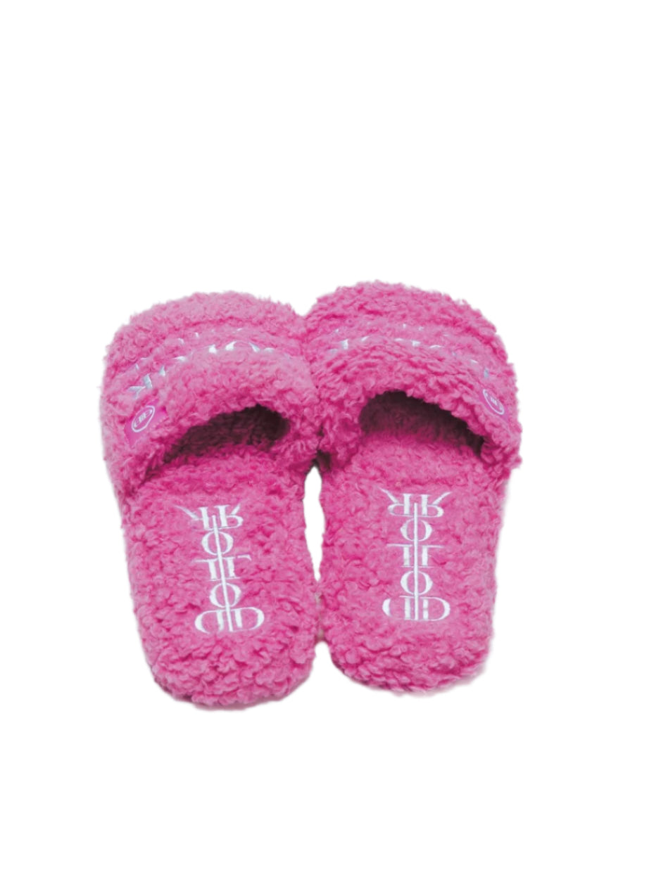Furry Slide Sandal in Pink/White